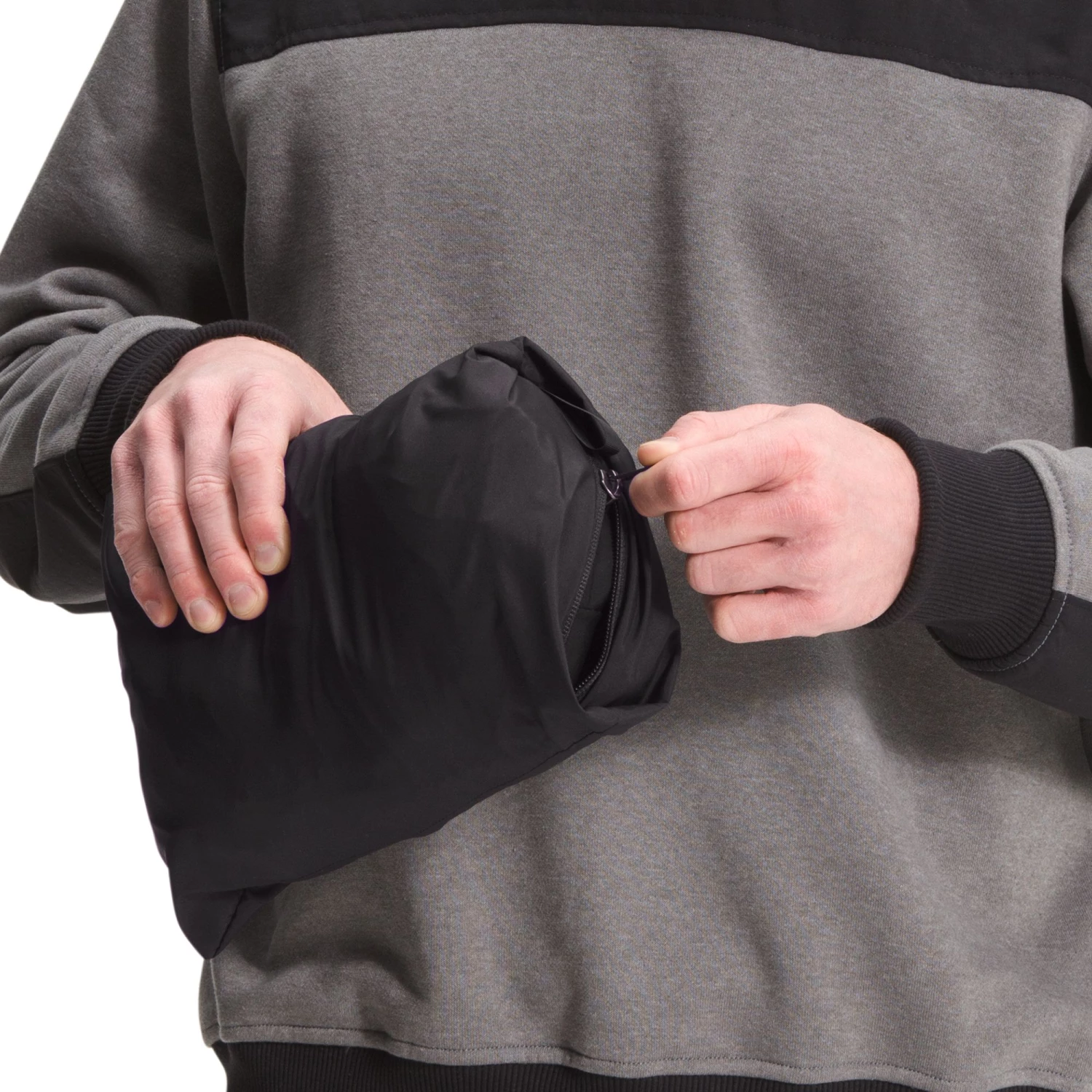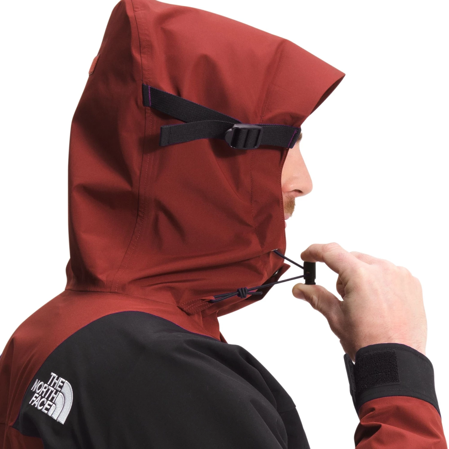 - Oversize cord lock and tied bungee-adjustment system at hood collar for easy grip