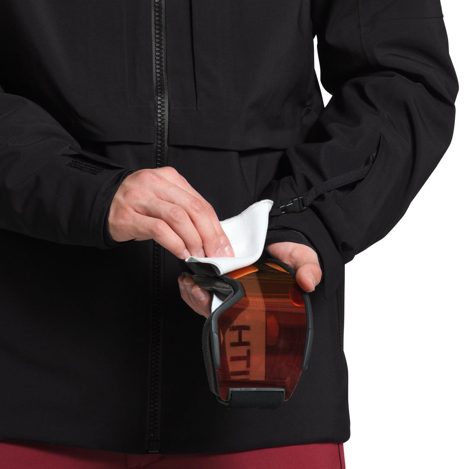 - Secure-zip wrist pocket with goggle wipe