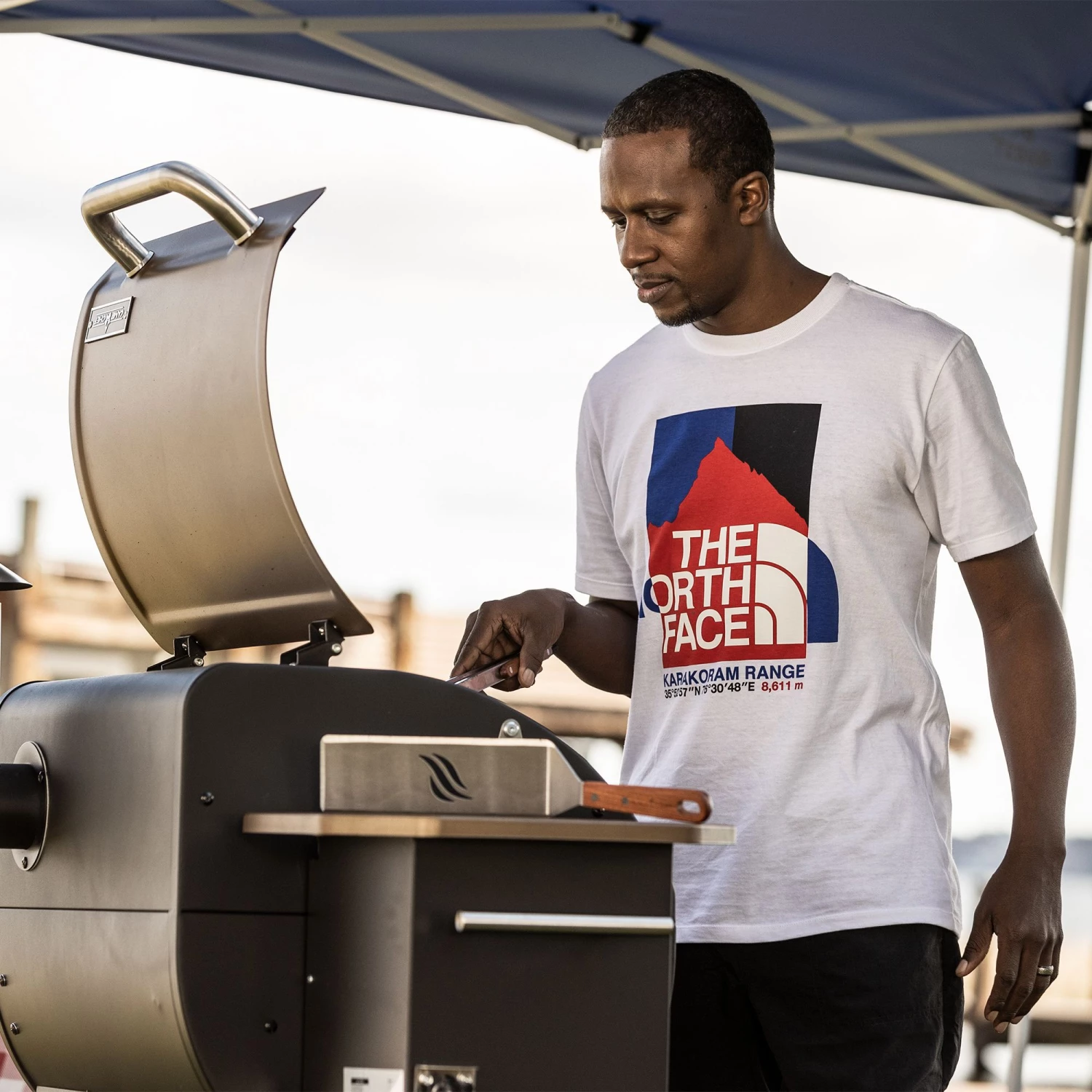 - No-hand, water-based, screen-printed acrylic graphic on chest and logo on back-right shoulder