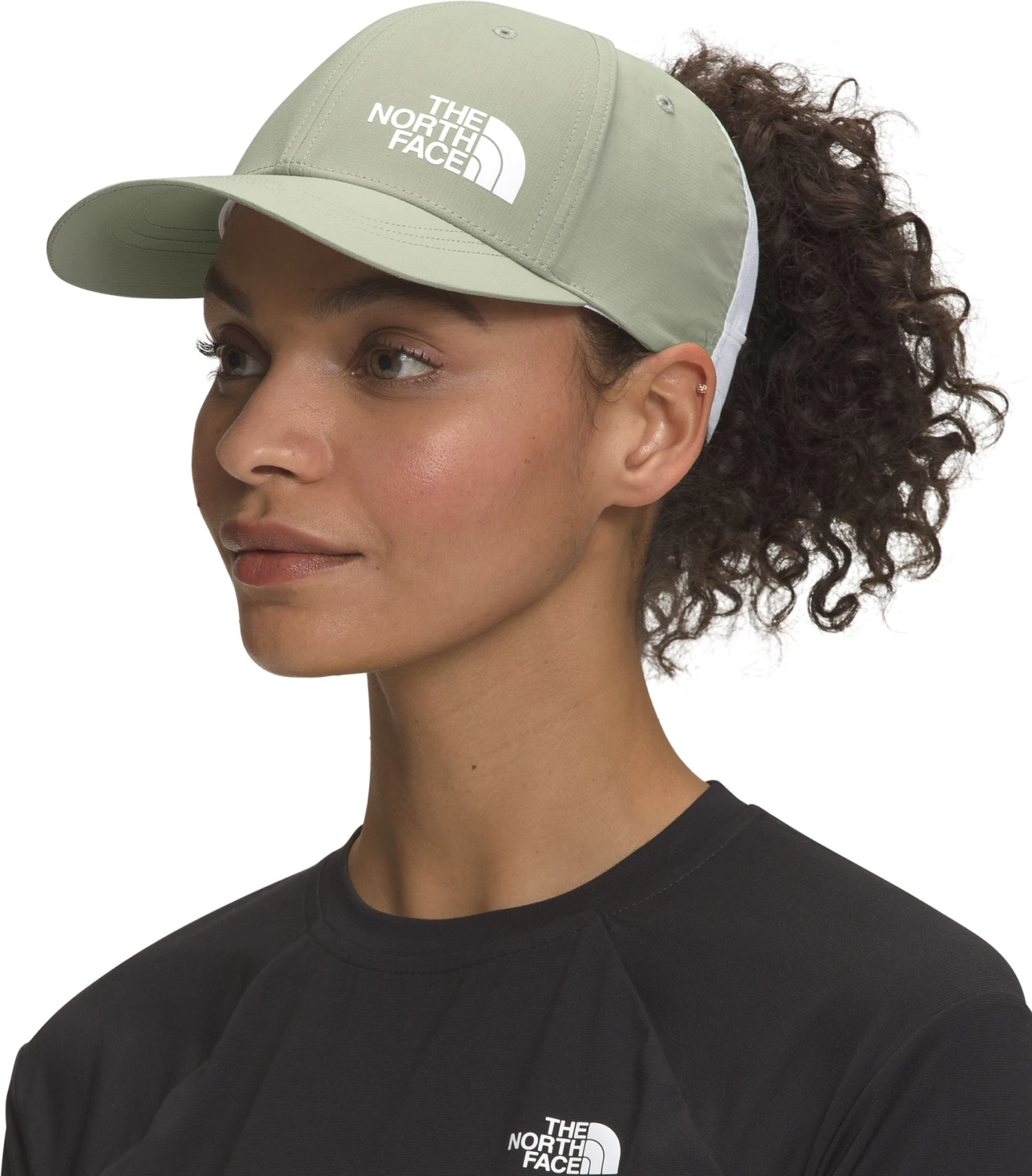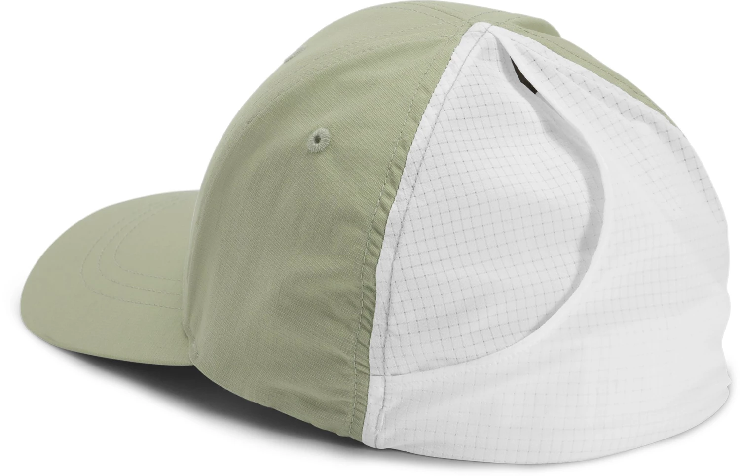 - Grid-mesh back panels with an opening so you can wear your ponytail at any height